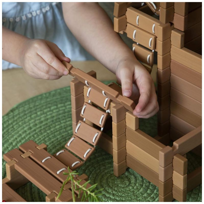 O Guidecraft Tabletop Notch Blocks – Western 129 peças é um conjunto de blocos de construção em plástico TPE em tom natural, com entalhes que permitem encaixes firmes para criar estruturas inspiradas em arquitetura ocidental em superfícies de mesa. As peças podem ser utilizadas em ambientes internos ou externos, inclusive em propostas com água, areia, terra e outros materiais soltos, favorecendo cenários de brincadeira dramática e exploração arquitetônica.?