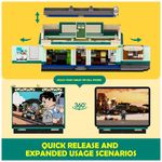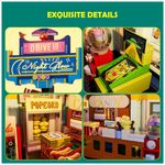 Elementos destacáveis: Telhado removível, paredes traseiras com abertura e elementos internos móveis como máquinas de fliperama, máquina de pipoca e expositores??
