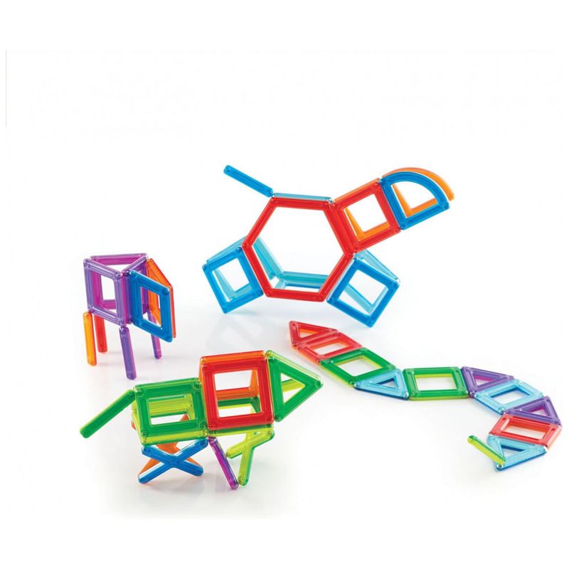 O Guidecraft PowerClix Frames 48 peças é um conjunto de construção magnético aberto, composto por peças em formato de moldura geométrica com ímãs que não se repelem, permitindo criar modelos em duas e três dimensões. As peças em plástico ABS translúcido exibem cores vivas e conectam-se por um sistema de “clique” magnético, adequado para uso em casa e em ambientes educacionais.?