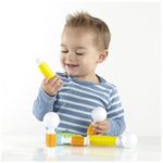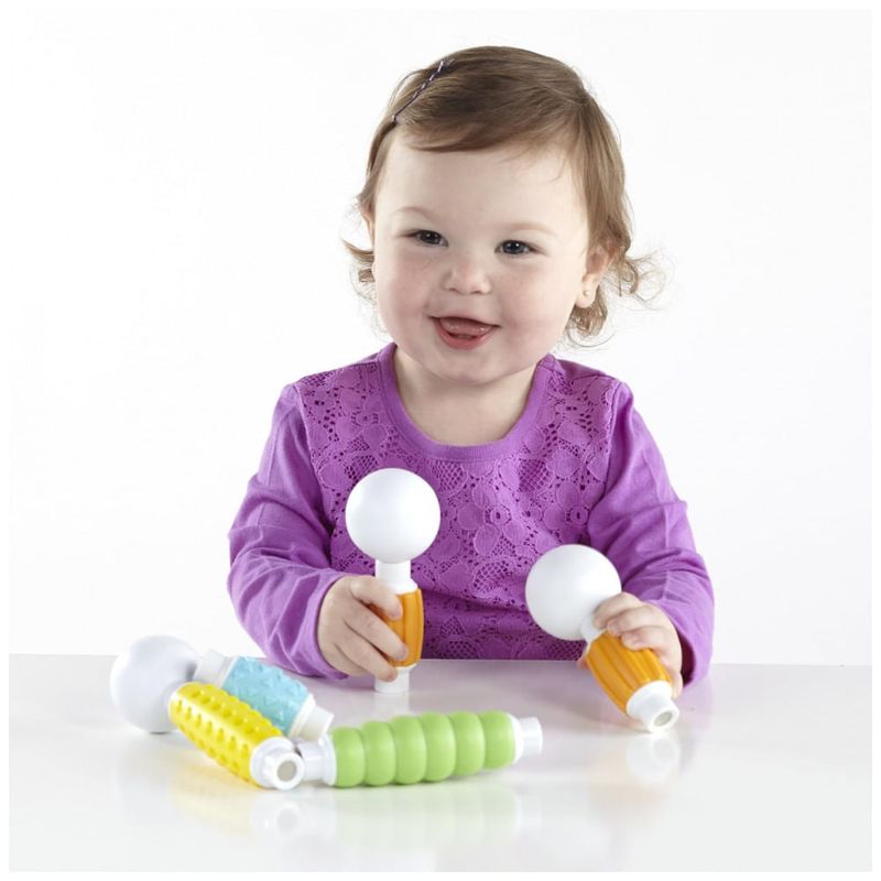 O kit traz 20 peças em cores suaves e brilhantes, com quatro texturas foscas diferentes que estimulam exploração tátil, preensão e coordenação motora fina, ao mesmo tempo em que introduzem princípios básicos de geometria e engenharia por meio de construções simples em 2D e 3D. A configuração de bastão e esfera oferece opções de montagem intuitivas, reduzindo frustração e apoiando noções de equilíbrio, simetria e causa e efeito em contextos livres ou mediadas por adultos.?