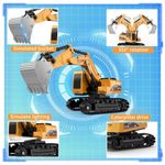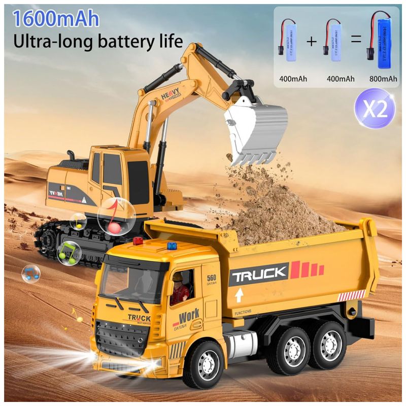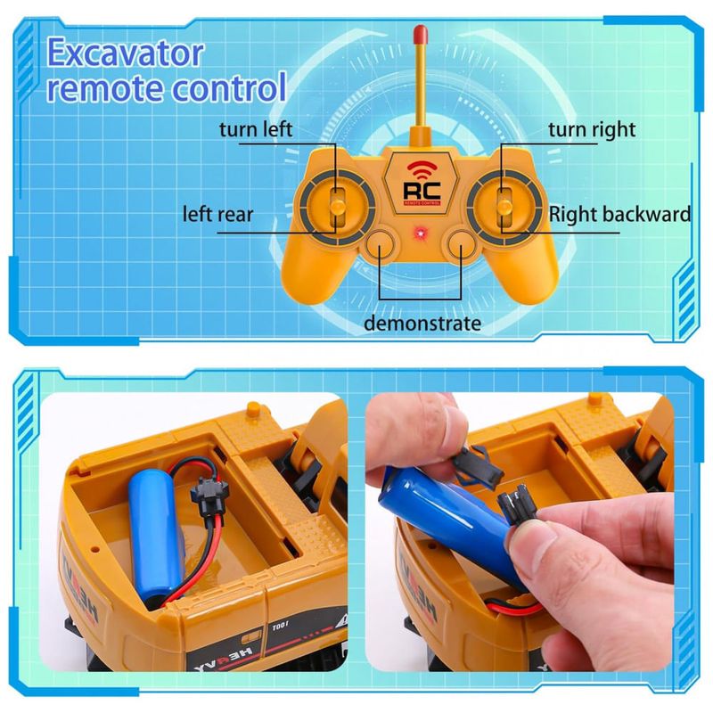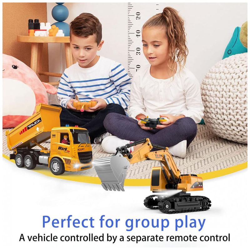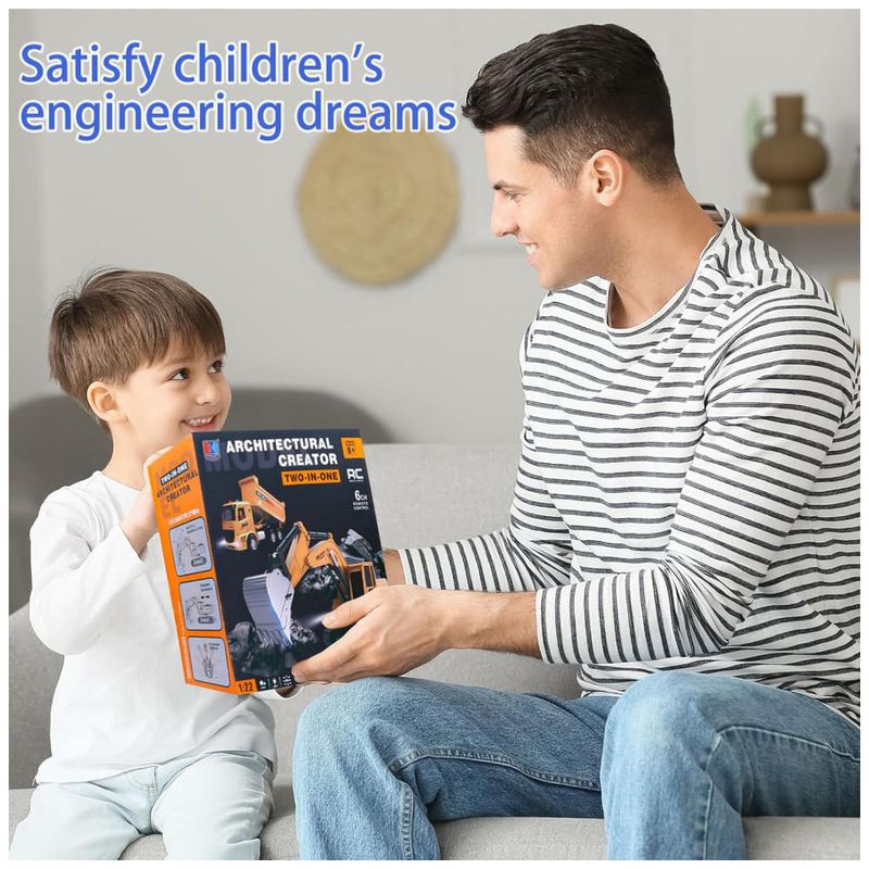 O Conjunto de Brinquedos de Veículos de Construção RC inclui uma Escavadeira RC e um Caminhão Basculante RC. Além disso, o conjunto conta com 2 controles remotos, 4 sinais de trânsito, 4 barreiras e 5 rochas simuladas. Experimente a autenticidade com nosso conjunto de construção de metal em escala 1:20. Feito de plástico ABS durável, atóxico, livre de BPA e chumbo, seguindo o padrão de brinquedos dos EUA. Com medidas realistas, a escavadeira mede 10cm x 23cm x 28cm, e o caminhão basculante mede 7cm x 11cm x 24.5cm. Este conjunto é o presente perfeito de aniversário e Natal para crianças, promovendo diversão e desenvolvimento da coordenação motora. Acompanhado de sinais de trânsito, este conjunto estimula a imaginação das crianças, proporcionando diversão ilimitada e desenvolvendo o pensamento criativo. Não hesite, proporcione essa experiência única!