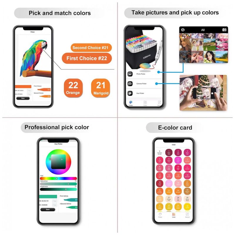 COMBINAÇÃO DE CORES PERFEITA COM APLICATIVO GRATUITO: Nosso marcador de álcool vem com um aplicativo gratuito que permite encontrar rapidamente o marcador certo e obter a cor perfeita para sua pintura. Nosso marcador de álcool resolve o problema da diferença de cor e da incapacidade de identificar rapidamente marcadores em outros produtos, tornando o muito adequado para usuários iniciantes e avançados.