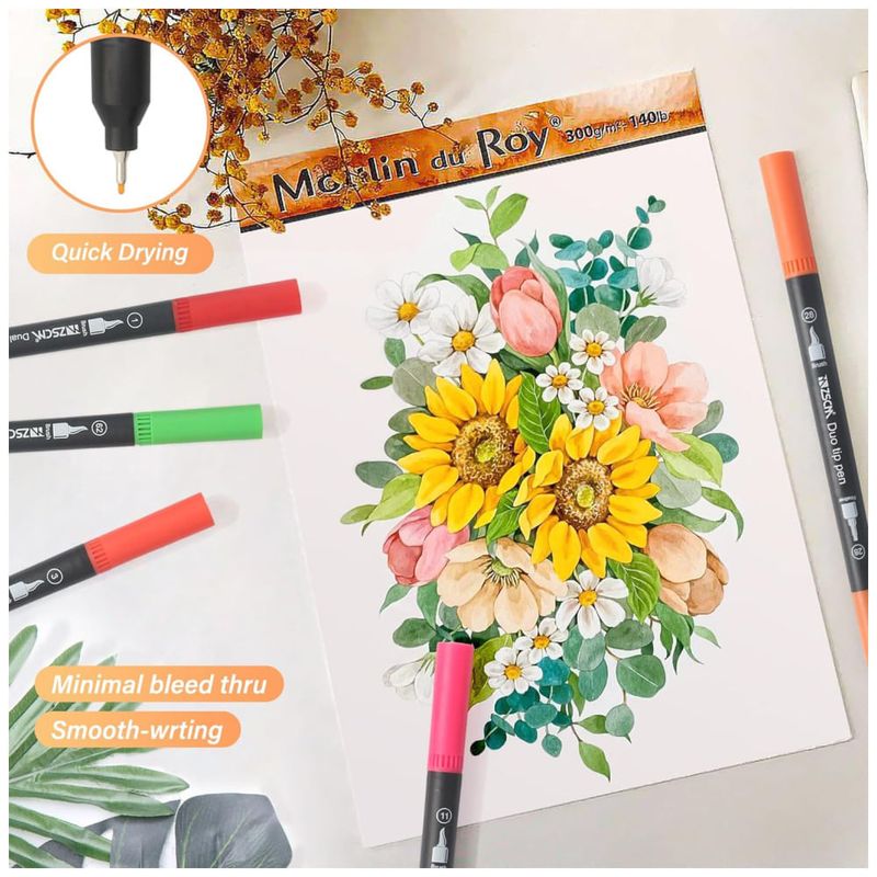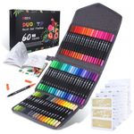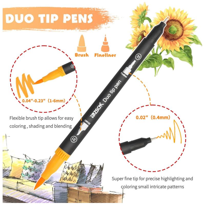 Canetas de ponta dupla, duráveis e duradourasZSCM 60 cores Marcadores de pincel de ponta dupla 2 pontas diferentes: ponta fina de 0, e ponta de pincel de 1 , flexível e resistente. A ponta fina é ótima para esboços e linhas finas e a ponta macia do pincel para sombrear e colorir rapidamente em projetos de arte de grandes áreas. Conjunto de marcadores de pincel perfeito para sua próxima obra prima