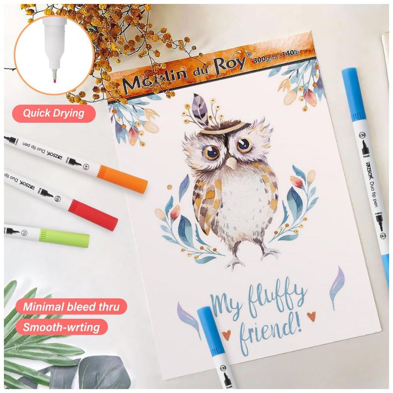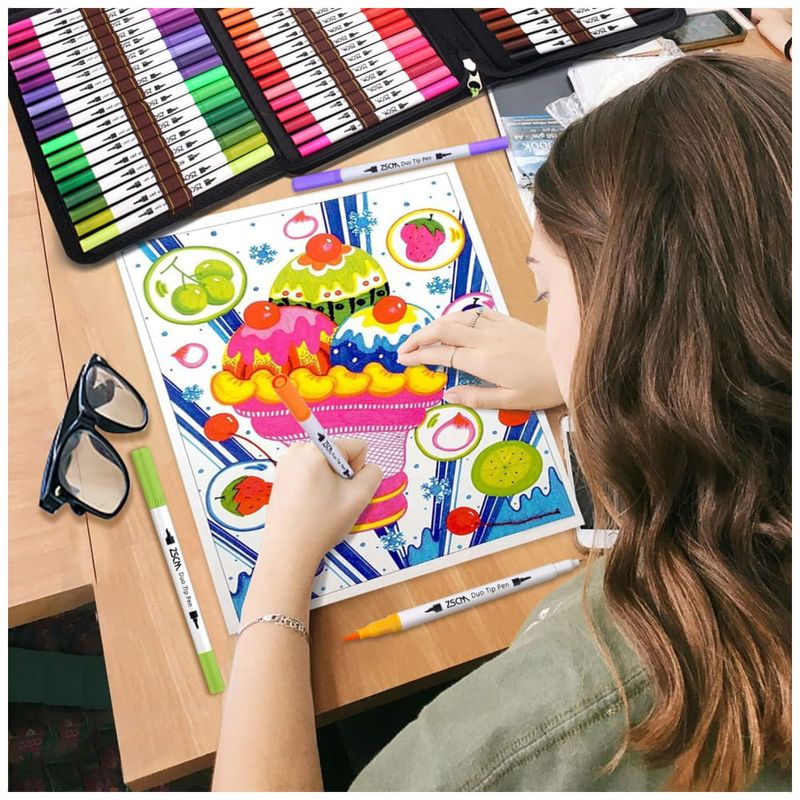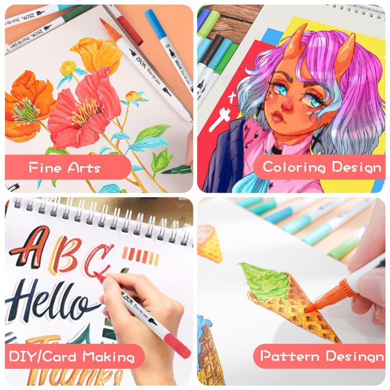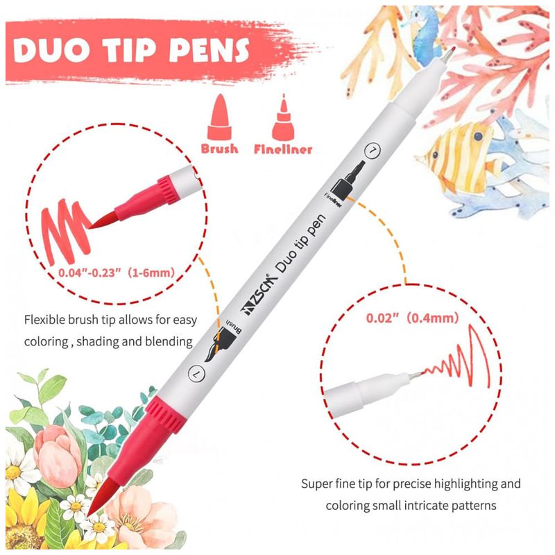 Canetas de ponta dupla, duráveis ZSCM 60 cores Marcadores de pincel de ponta dupla 2 pontas diferentes: ponta fina de 0, e ponta de pincel de 1 , flexível e resistente. A ponta fina é ótima para esboços e linhas finas e a ponta macia do pincel para sombrear e colorir rapidamente em projetos de arte de grandes áreas. Conjunto de marcadores de pincel perfeito para sua próxima obra prima.