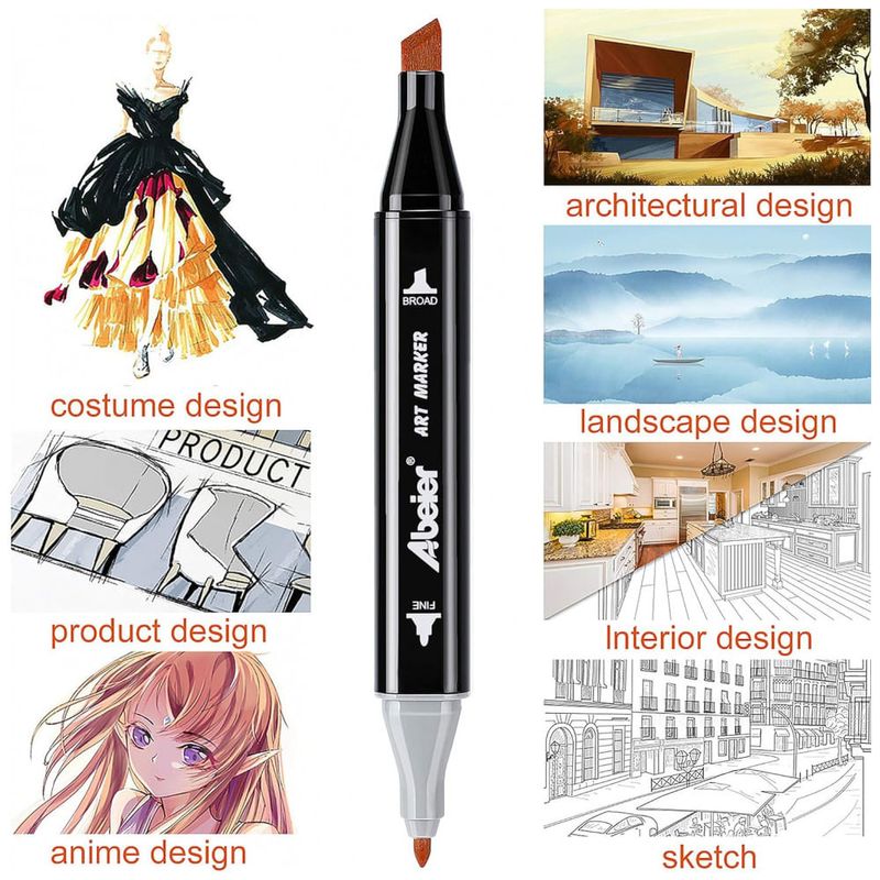 Pontas finas de ponto de bala e cinzel: pontas duplas premium permitem que você crie vários estilos, esboços e padrões com facilidade. Quer esteja espalhando uma área grande ou retratando linhas finas, pode funcionar bem.