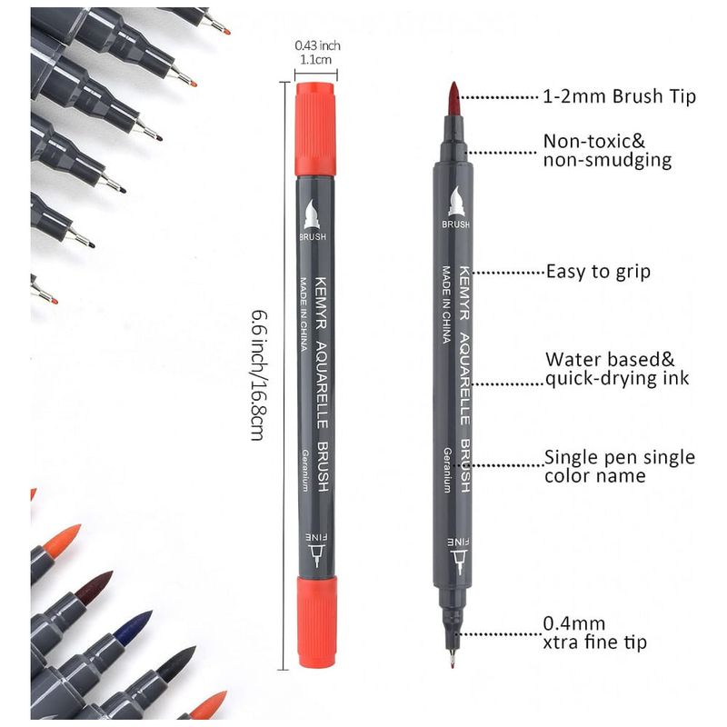 80 CORES ÚNICAS 80 cores diferentes de marcadores para colorir atendem totalmente às necessidades de pintura dos iniciantes. Tanto a ponta fina quanto a ponta do pincel possuem 80 cores vivas. Portanto, você só precisa de um conjunto de marcadores de ponta dupla para escrever, pintar e colorir.