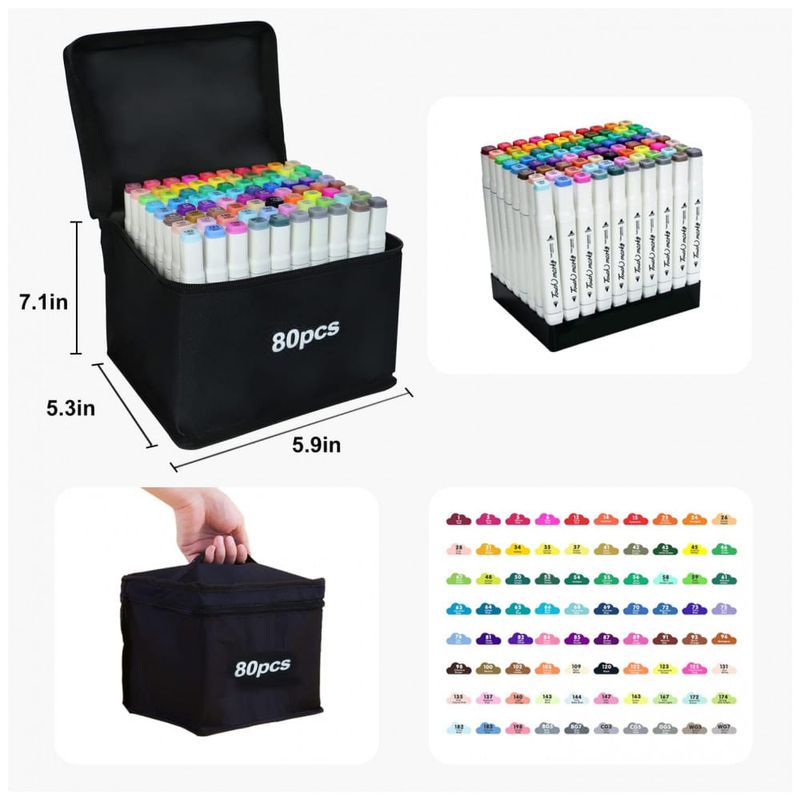 BOA IDEIA DE PRESENTE 80 marcadores de tinta alcoólica vêm com uma bolsa de transporte com zíper durável. Organizadores de fundo resistentes mantêm as canetas em ordem. Este conjunto de marcadores de álcool é ideal para adolescentes, crianças, adultos, estudantes, artistas, amadores, ilustradores profissionais ou iniciantes. Uma ótima ideia de presente para um semestre, aniversário da filha, Natal, ano , etc.