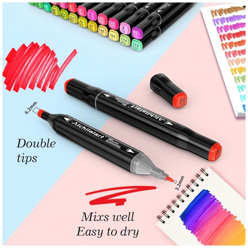 Marcadores de esboço de tinta de super qualidade Cores de tinta de secagem rápida para serem aplicadas de forma limpa, suave e uniforme, que resistem a manchas, desbotamento e não mancham. Seus MARCADORES DE ÁLCOOL DURARÃO MUITOS PROJETOS DE ARTE com alto volume de tinta e um sistema inteligente design de tampa que evita que os marcadores sequem