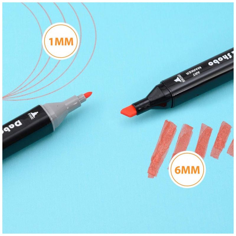 DIFERENTES PROJETOS DE CABEÇA DUPLA: A caneta marcadora tem duas cores de preto e branco, e o design do porta caneta quadrado dificulta o deslizamento durante o uso. O design de extremidade dupla de cinzel áspero e ponta fina é dotado de propriedades multifuncionais. A ponta fina pode ser usada para marcas de caligrafia detalhadas, a nota de cinzel largo é adequada para áreas de pintura de grandes áreas, dois designs correspondentes de NIB diferentes, coloração mista perfeita, pode melhorar a eficiência da coloração.