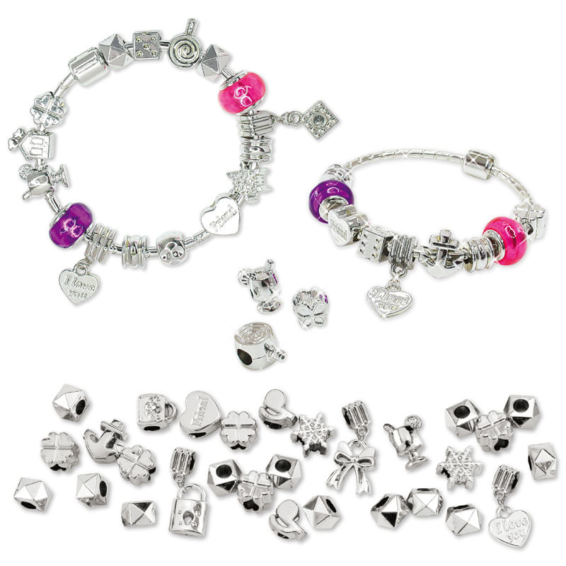 Um kit encantador repleto de miçangas coloridas e pingentes fofos para montar pulseiras únicas. Perfeito para pequenos artistas criarem, combinarem e brilharem com muito estilo!