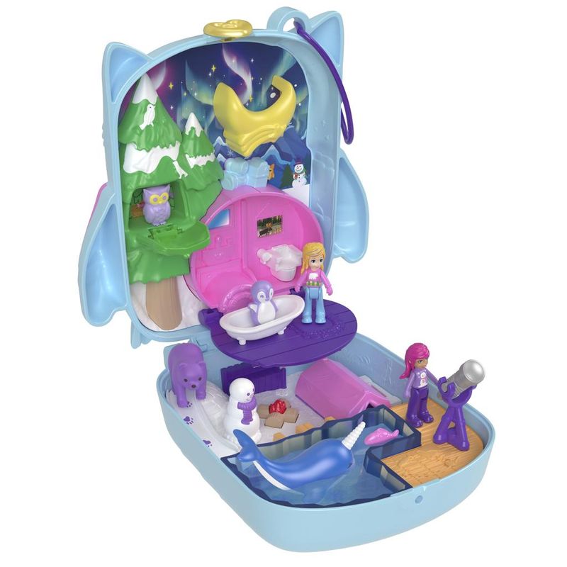 Junte-se à boneca Polly no Estojo Festa do Pijama Coruja da neve! Mergulhe em um mundo de diversão em casa ou durante uma viagem. Este estojo inclui um recurso de brincadeira na água com duas peças que mudam de cor. As crianças podem encher o lago congelado com água usando o regador! Há 12 acessórios e 7 recursos para narrativa. O trenó balança para frente e para trás para a melhor diversão ao ar livre! Não se esqueça do telescópio giratório para admirar o céu estrelado! Depois, a boneca Polly pode ficar confortável dentro da barraca. Algumas peças acessórias são Pop & Swap para infinitas possibilidades de brincadeiras! Excelente presente para crianças a partir de 4 anos. As cores e as decorações podem variar.