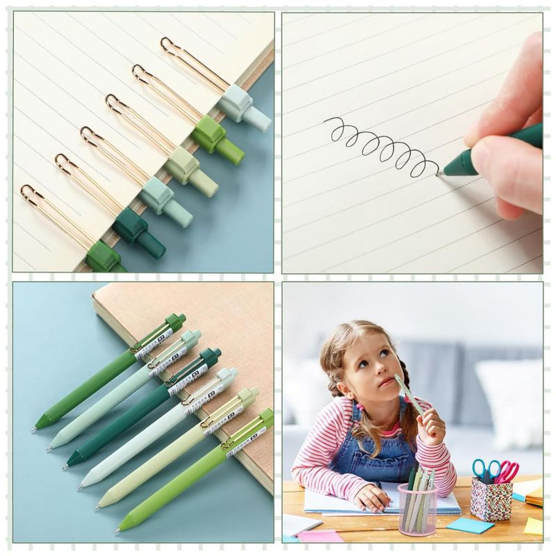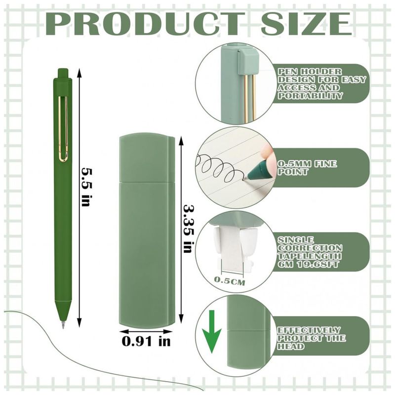 Conteúdo da caixa: 6 canetas retráteis de tinta preta, 6 fitas corretivas, 1 conjunto de notas adesivas verdes com 240 folhas e 240 marcadores de página autoadesivos (total 480 peças)