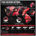 Modo Multijogador e Multiarmas: Com 4 cores de equipe para escolher, até 4 jogadores podem se enfrentar em uma arena cheia de ação. O conjunto oferece 4 modos de armas poderosas: PISTOLA (tiro único), METRALHADORA, ARMA LASER e PLASMA, permitindo que você alterne entre eles para derrotar seus inimigos e garantir a vitória. Quando as pistolas ou os coletes vibrarem fortemente, é hora de recarregar, usando o botão localizado na parte inferior da arma. O design ergonômico das pistolas garante uma pegada confortável, ideal até para crianças.