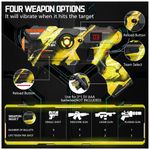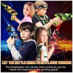 Modo Multijogador, Multiarmas: Escolha entre 4 cores de equipe e aproveite a emoção de jogar com até 4 pessoas. O conjunto oferece 4 modos de armas para diferentes estratégias: PISTOLA (tiro único), METRALHADORA, ARMA LASER e PLASMA. Alterne entre os modos para derrotar seus inimigos e garantir a vitória. As armas e coletes vibram fortemente quando você é atingido, e o botão de recarga na parte inferior da arma adiciona um toque extra de realismo. O design ergonômico garante uma pegada confortável, até mesmo para as mãos das crianças.