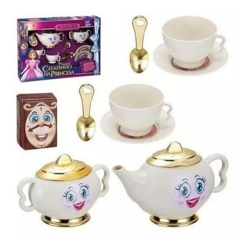 Kit cozinha chazinho da princesa c/9pcs brinquedo - Zuca ToysCaracterísticas:Chazinho da Princesa Bela e a Fera 9 PeçasO chazinho é ideal para juntar os amiguinhos e a família para brincarem todos juntos de uma forma muito divertida. Se encante e crie muitas brincadeiras!Composto por 09 peças, sendo: 02 xícaras, 02 pires, 01 açucareiro, 01 bule e 01 relógio (não contém mecanismo).Detalhes em dourado cromado e adesivos com ilustrações em algumas peças.Medidas aproximadas: bule (15Cx09A cm), xícara (6Dx5A cm), pires (9D cm).Material: plástico.Fabricante: Zuca Toys