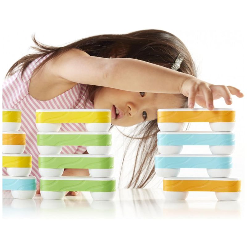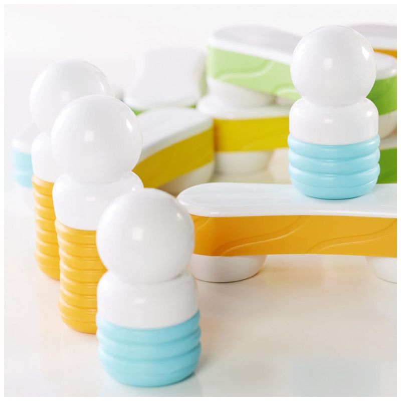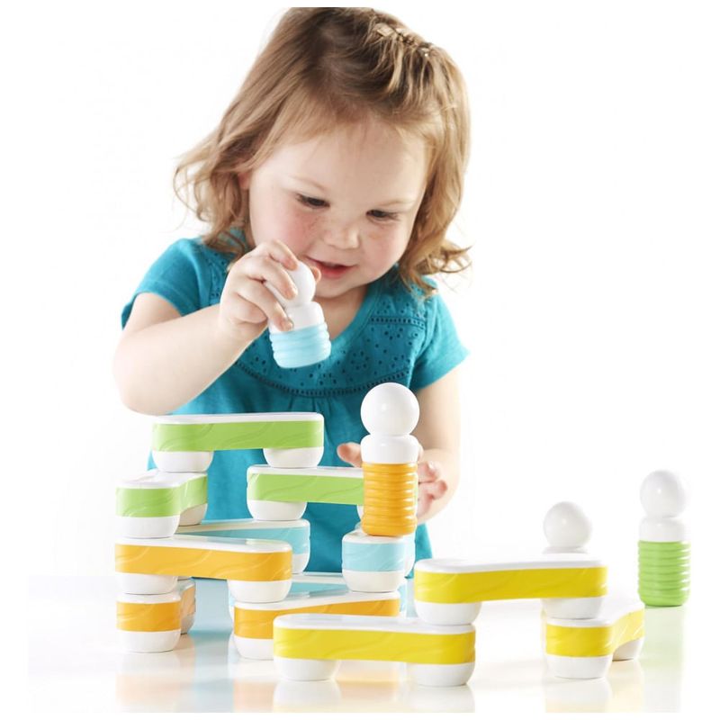 As construções sugerem figuras humanas simplificadas e agrupamentos, incentivando reconhecimento de padrões, sequências de cores e brincadeiras de faz de conta com pequenos personagens magnéticos. O brinquedo faz parte da plataforma Grippies de brinquedos STEM para a primeira infância e introduz noções básicas de magnetismo (atração positiva/negativa) em contexto de exploração livre.?