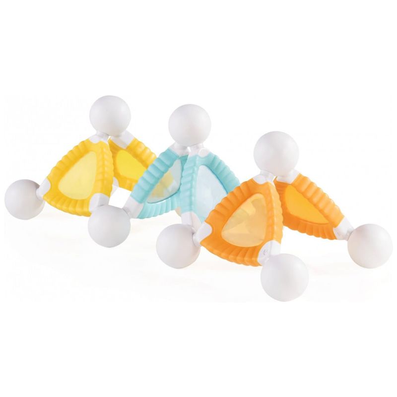 O Guidecraft Grippies Windows – 24 peças é um conjunto de blocos magnéticos macios voltado para crianças de 18 a 60 meses, combinando barras com janelas translúcidas coloridas e conectores esféricos metálicos revestidos. As peças possuem textura em plástico macio sobre molde metálico, com dimensões volumosas para fácil preensão por mãos pequenas, permitindo explorações de empilhar, conectar e alinhar formas.?