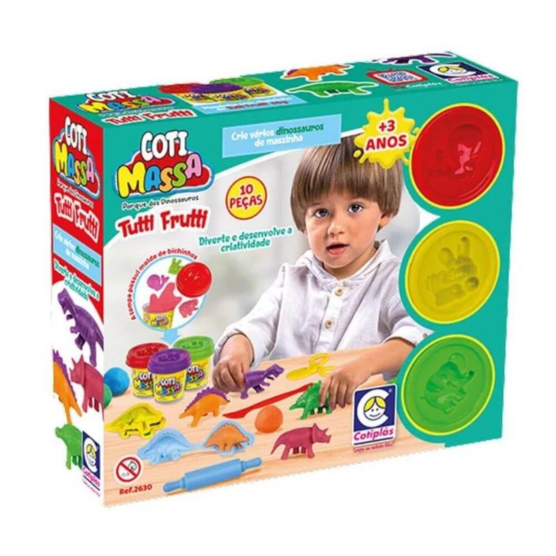 Massinha de Modelar - Coti Massa - Parque dos Dinossauros - 2630 Estimule a criatividade e a imaginação com a Coti Massa Tutti Frutti Esse conjunto de massinha de modelar vem com vários potes de diversas cores e formas para as crianças usarem em suas criações