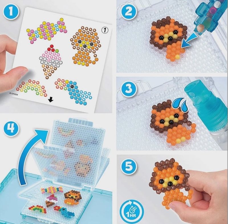 Divirta-se muito com o mega pacote de contas. Contendo 2.400 contas em 24 núcleos, este conjunto criativo permitirá fazer desenhos com mega imaginação. Completo com jóias e contas sólidas, você guarda facilmente este conjunto no estojo de contas estrela cadente e carrega com você. Aquabeads são os bons brinquedos de arte e artesanato para crianças. Fácil de usar, você apenas faz o design em uma bandeja de layout, borrifa com água e depois espera que ele se ajuste para que você possa manter os designs para sempre.