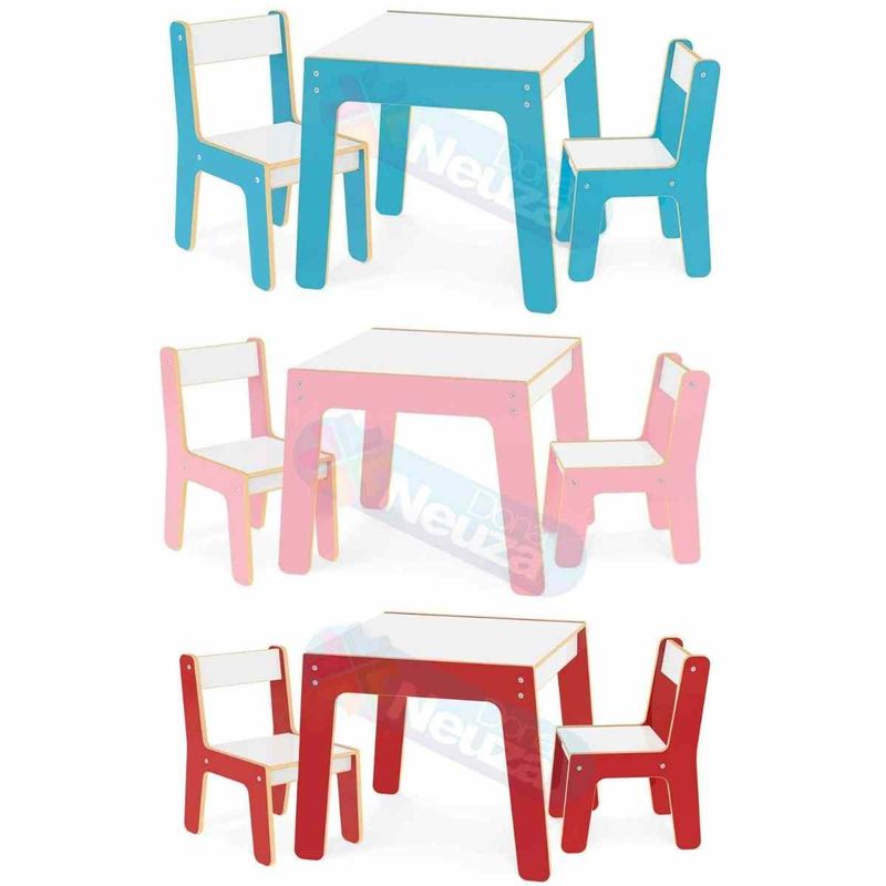 Conjunto de Mesa com 2 Cadeirinhas Infantis da Junges em madeira de reflorestamento (MDF) com pintura atóxica. Produto resistente, ecológico, prático e fácil de montar (acompanha kit de montagem com chave).