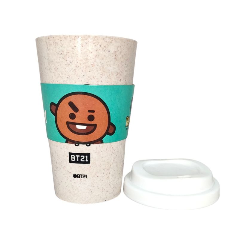 CARACTERÍSTICAS DO PRODUTO Marca: Beekid Comprimento x Altura x Largura: 7cm x 13cm (c/ tampa) x 7cm Composição: Fabricado em PP e Fibra de madeira. Peso: 78g Cor: Branco e Bege Sku: 051CT EAN (Código de barras): 7898952468244 Recomendado acima de 4 anos Detalhes: Capacidade: 320ml Possui tampa com abertura para beber o liquído Vedação por pressão Reutilizável Não é térmico Selo Line Friends Instruções de uso: Pode ser utilizado tanto com bebida quente ou fria. Não é um copo térmico, segura a temperatura da bebida no máximo 1 (uma) hora. Instruções de lavagem: Lave usando apenas água, sabão ou detergente. Lavar apenas com o lado da esponja macia. BTS, também conhecido como Bangtan Boys, é um grupo sul-coreano formado pela Big Hit Music. Ele é composto por sete membros: RM, Jin, SUGA, J-Hope, Jimin, V e Jungkook. BT21 são os novos mascotes de cada membro do Bangtan. Como são sete membros, o mesmo acontece com seus mascotes. E cada um deles criou o seu próprio.