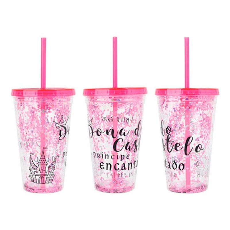 Copo De Plástico 450ml Shine Teen Com Canudo - Art Brink