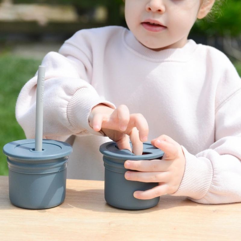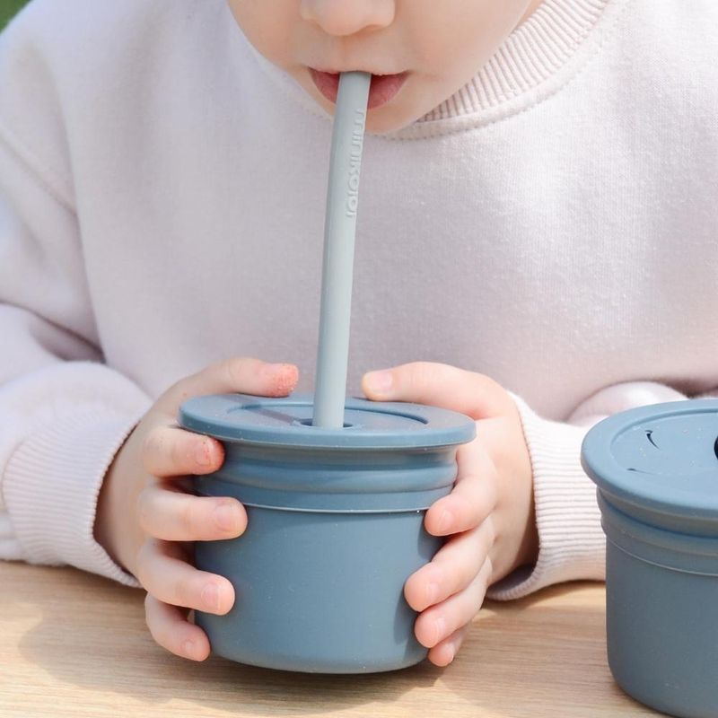 Copo Snack com Canudo Silicone Sip + Snack Deep Blue e Grey - Minikoioi
