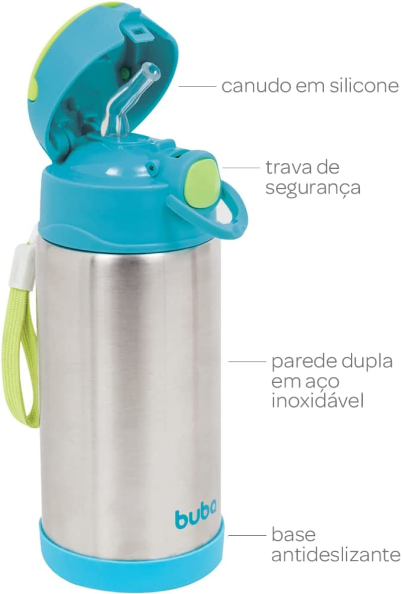 o Copo Termico Parede Dupla com Canudo da BUBA e a companhia perfeita para passeios e viagens. Produzido em aco inoxidavel com parede dupla. e resistente. higienico e conserva a temperatura da bebida por mais de 5 horas