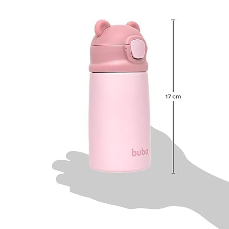 1 Garrafinha Térmica Parede Dupla com Canudo de Silicone Ursinho Rosa 320ml 18076 - Buba