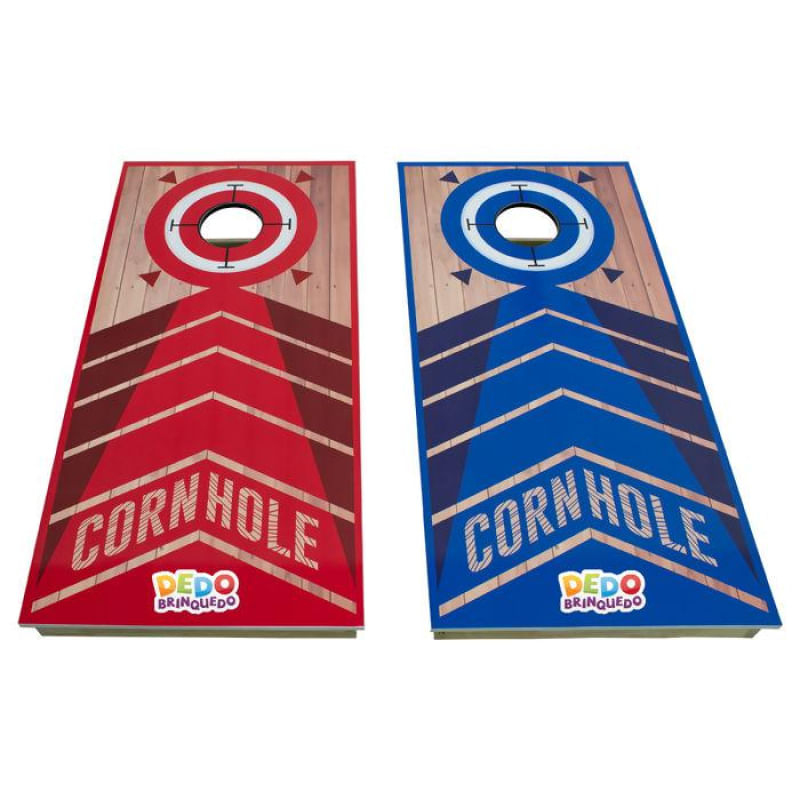 Cornhole - Acerte o alvo Super novidade na Dedobrinquedo! CORNHOLE é uma brincadeira de lançamento de sacos de milho, que se tornou um jogo com origem no Centro-Oeste e se tornando muito popular nos EUA especialmente em bares, universidades, áreas de lazer e residências. CORNHOLE é um jogo muito divertido, onde cada participante/jogador tem que lançar pequenos sacos de milho em uma plataforma de madeira que possui um buraco, o qual será o alvo. É um jogo de arremesso e pontaria, podendo ser jogado por duas ou mais pessoas, sempre em números pares, formando duas equipes ou mais, conforme o número de participantes/jogadores. A distância entre as plataformas poderá ser ajustada conforme a idade ou força e habilidade dos participantes/jogadores. Pontuação: - o vencedor será o participante/jogador ou equipe que atingir 21 pontos. - cada saco que entrar ou cair no buraco valem 3 pontos. - cada saco que ficar sobre a plataforma vale 1 ponto. Obs.: Saco fora da plataforma não pontua. Um saco adversário poderá derrubar da plataforma um saco do participante/jogador oponente, saco que sair da plataforma não pontua. Caso o saco do adversário derrubar no buraco o saco do participante/jogador oponente, este contará 3 pontos. Componentes do CORNHOLE: - cada jogo contém 2 placas de CORNHOLE de tamanho regulamentadas e 8 sacos de milho sendo, 4 de uma cor 4 de outra cor. - as placas são construídas com armações em madeira qualificada e apresentam duas vigas longitudinais e transversais para sustentação, sendo a superfície do jogo em madeira compensada. - as pernas das placas são articuladas com parafusos e deverão ser dobradas para baixo para armazenamento e transporte. - os sacos medem 6 ? x 6 ? = 15 cm x 15 cm de pano e preenchido com 1 libra = 15,5 onças = 0,43 kg de milho. - a cor base para cada participante/jogador pode variar da imagem exibida em alguns produtos. Este delicioso jogo está ganhando seguidores em todo o Brasil. Venha conhecer e descobrir a diversão do momento: o CORNHOLE.