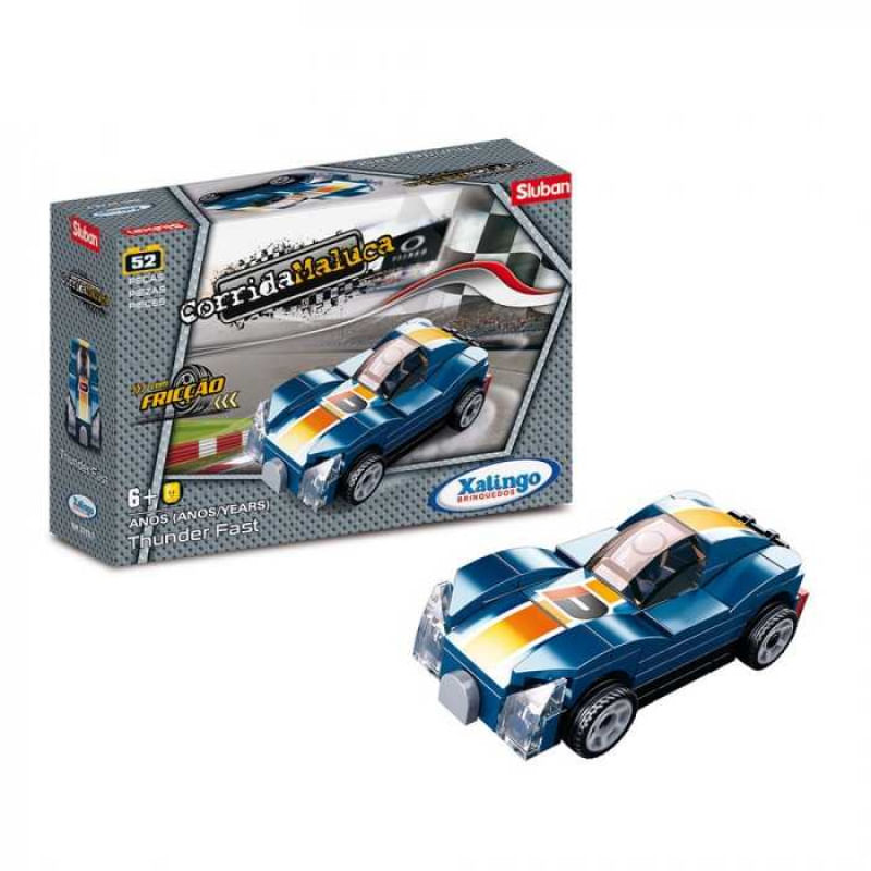 Prepare-se para uma emocionante competição com os blocos de encaixe Corrida Maluca Thunder Fast montando o seu carrinho, com 52 peças. Além de um super design diferenciado, o mais legal é que a criança vai brincar com o carrinho que ela própria montou. O brinquedo que pode ser colecionável vem em outros formatos e cores. Indicado para crianças a partir dos 6 anos