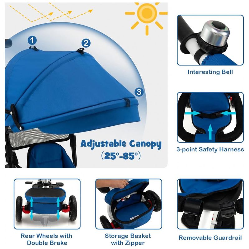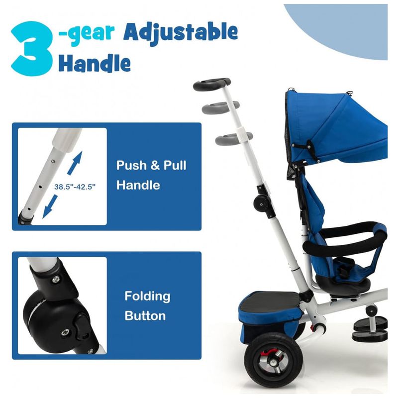 Costzon 8807 Triciclo Infantil para Passeio com Assento Ajustável 8 Estágios, Idade Recomendada 1 a 5 Anos, Azul