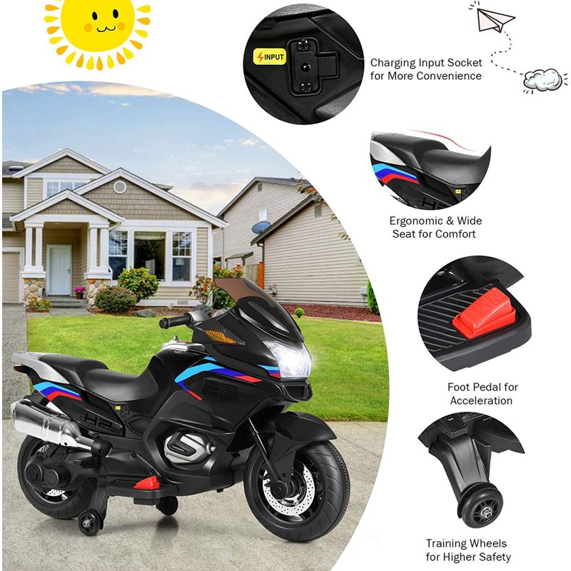 Presente perfeito para crianças luzes LED brilhantes iluminam o ambiente escuro para uma direção segura. Sua aparência legal e realista de uma motocicleta real pode r o interesse das crianças, permitindo lhes experimentar a sensação de um super herói. É um presente perfeito para crianças com mais de 3 anos