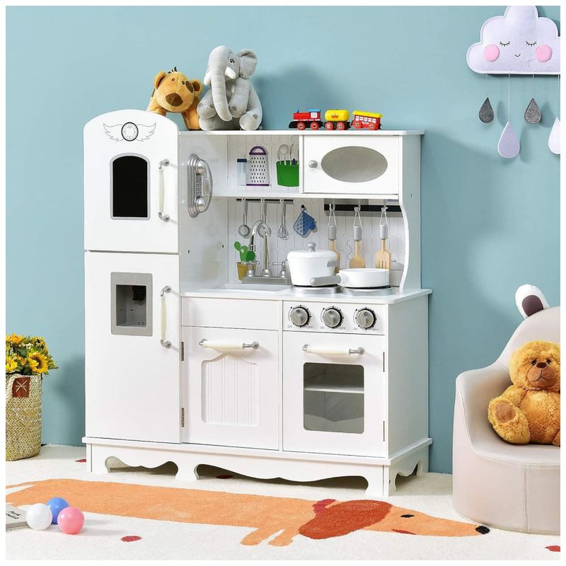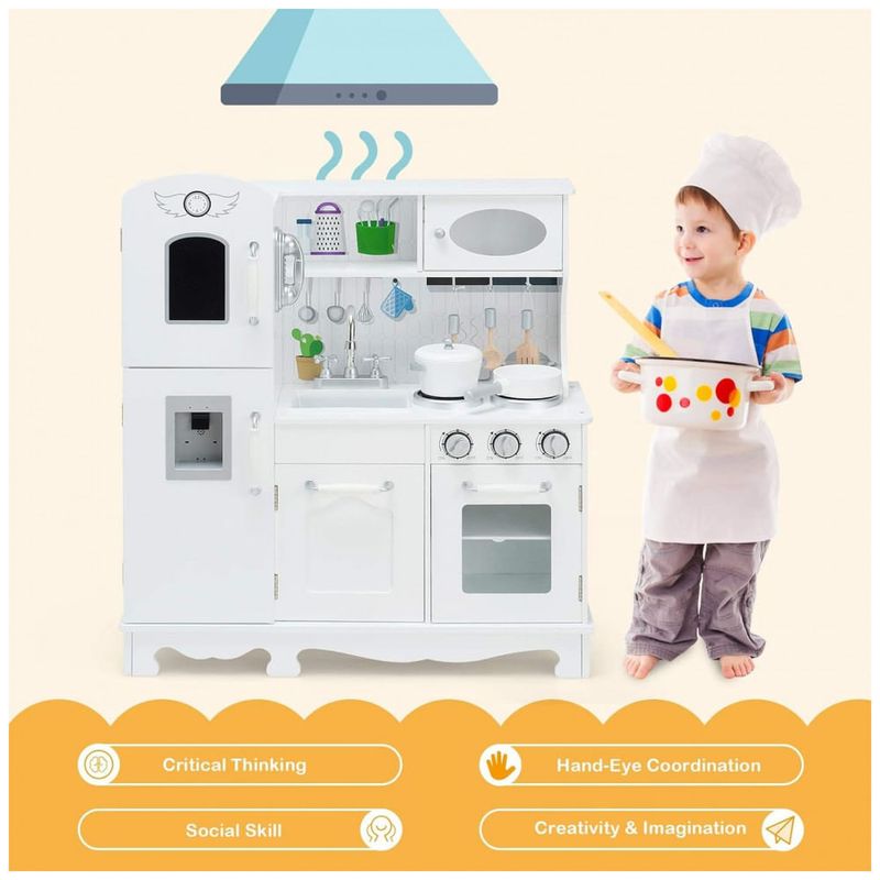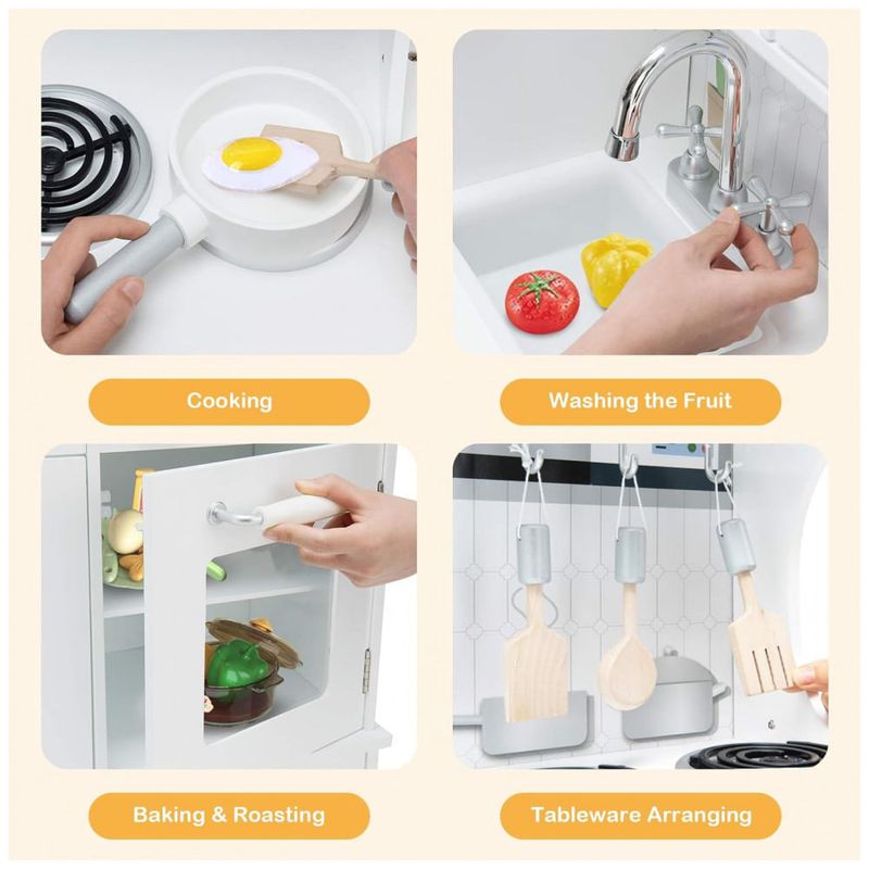 BRINQUEDO DE COZINHA EDUCACIONAL Este conjunto de brinquedos de cozinha cuidadosamente criado é uma boa maneira de seus filhos aprenderem sobre culinária e reconhecimento de tempo através de divertidos jogos de interpretação de papéis. O conjunto de cozinha permite que seus filhos compartilhem e brinquem com os amigos, aumentando assim a criatividade enquanto desenvolvem a interação social.