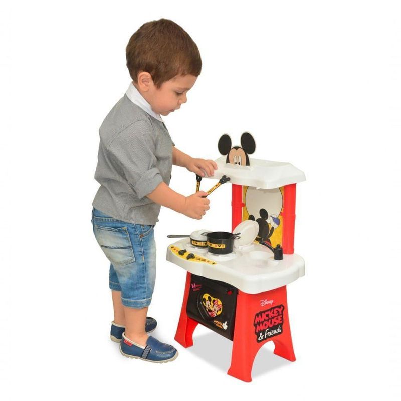 A Cozinha Mickey Disney é cheia de estilo para encantar as crianças. Possui pia, fogão, forno e coifa em um único produto. Os acessórios são personalizados e o brinquedo acompanha ainda utensílios de cozinha como pratos, talheres, panela e frigideira. Com som creck-creck, o produto faz parte da linha faz de conta, contribuindo para o desenvolvimento de atitudes positivas e permite à criança imitar, imaginar, criar, simular e reproduzir situações do cotidiano familiar. Indicado para crianças acima dos 3 anos.
