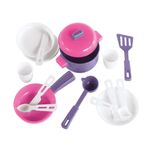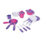 :: Conteúdo da embalagem: 1 Cozinha mini chef com água; 2 Abas laterais; 1 Panelinha com tampa; 1 Frigideira; 1 Leiteira com tampa; 2 Pratos; 2 Xícaras; 2 Facas; 2 Garfos; 2 Colheres; 1 Escumadeira; 1 Concha