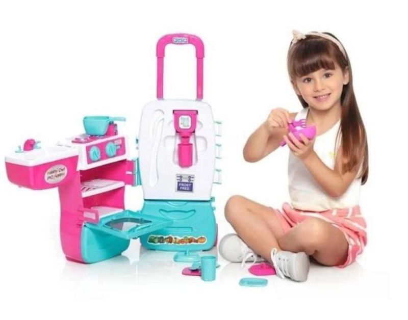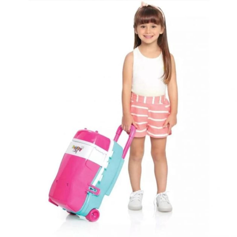 A Mobility Chef tem alça retrátil e rodinhas para sua super chef levar a brincadeira onde quiser.