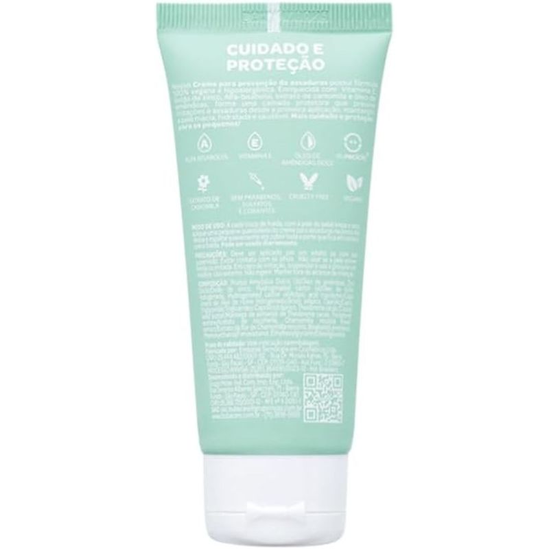Nosso Creme para prevenção de assaduras possui fórmula 100% vegana e hipoalergênica. Enriquecida com Vitamina E, óxido de zinco, Alfa-bisabolol, extrato de camomila e óleo de amêndoas, forma uma camada protetora que previne irritações e assaduras desde a primeira aplicação, mantendo a pele macia, hidratada e saudável. Mais cuidado e proteção para os pequenos!