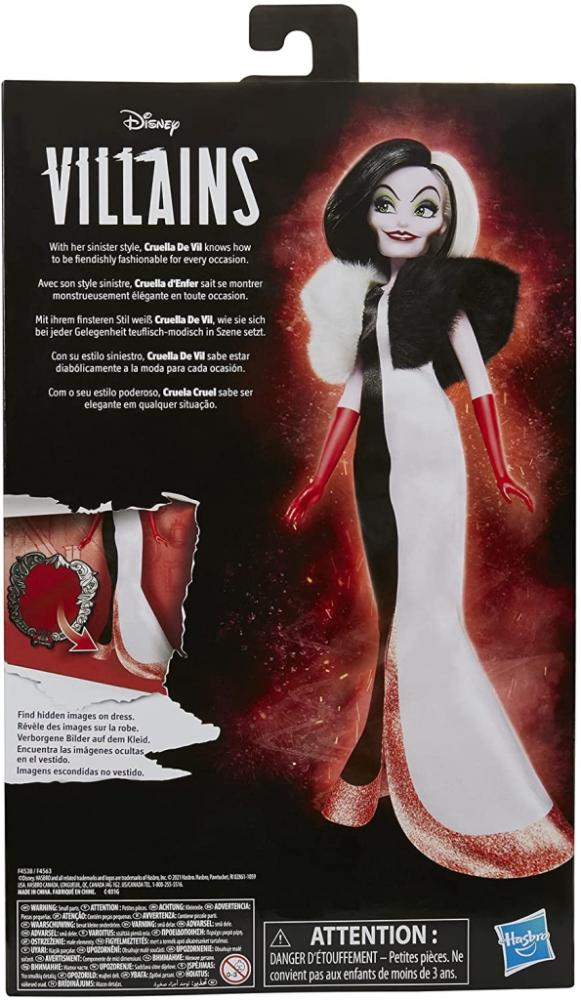 BONECA CRUELA DE VIL: A boneca da vilã do filme Os 101 Dálmatas da Disney possui 28 cm e vem com linda roupa e acessórios ROUPAS E ACESSÓRIOS: Com o seu longo vestido preto e branco e acessórios, esta boneca Disney Villains é um clássico da moda SURPRESAS ESCONDIDAS: As crianças a partir dos 5 anos vão adorar usar o decodificar para descobrir os acessórios escondidos em painéis secretos na embalagem MAIS SEGREDOS PARA SEREM REVELADOS: O decodificador pode ser usado para procurar imagens inspiradas escondidas no seu vestido LINHA DISNEY VILLAINS: Outras bonecas Disney Villains disponíveis como Úrsula, a Rainha Má e Malévola. Vendidas separadamente. Sujeitas à disponibilidade.