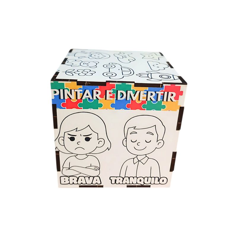 Cubo Cognitivo Pintando as emoções para Autistas reutilizavel com Tintas e Pincel