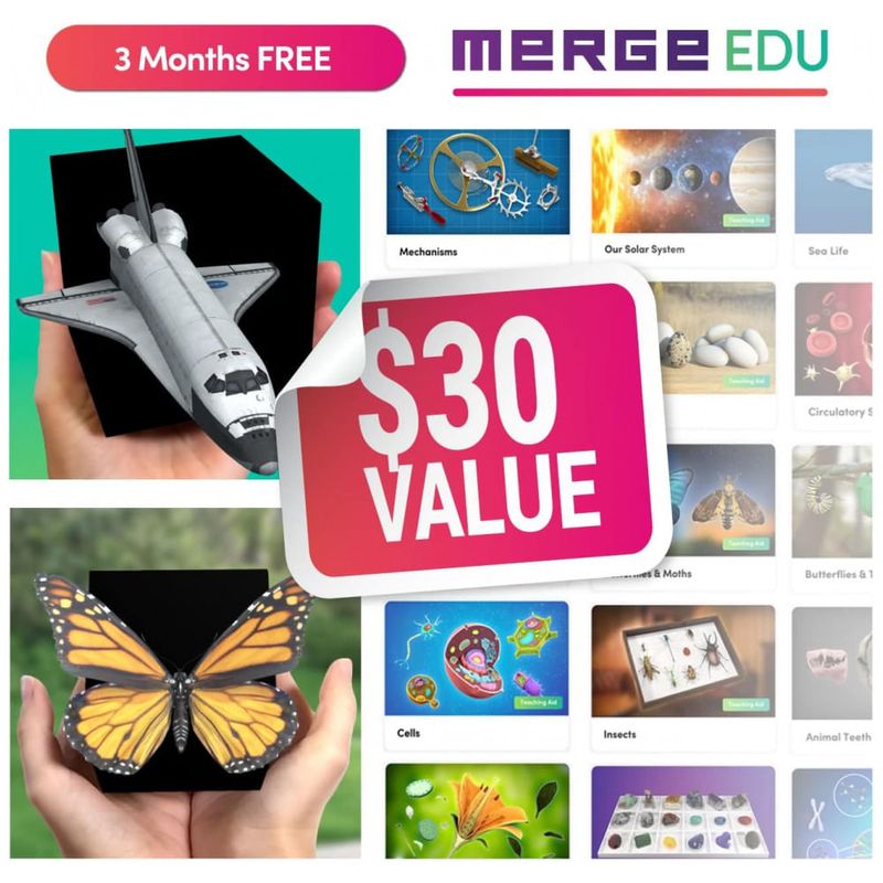 Assinatura gratuita de 3 meses para aplicativos Merge EDU valor 30 Vem com uma assinatura de 3 meses para todos os aplicativos Merge Merge Explorer, Object Viewer e HoloGlobe. Sempre há uma quantidade limitada de conteúdo gratuito. Funciona com dispositivos iOS, Android e Windows