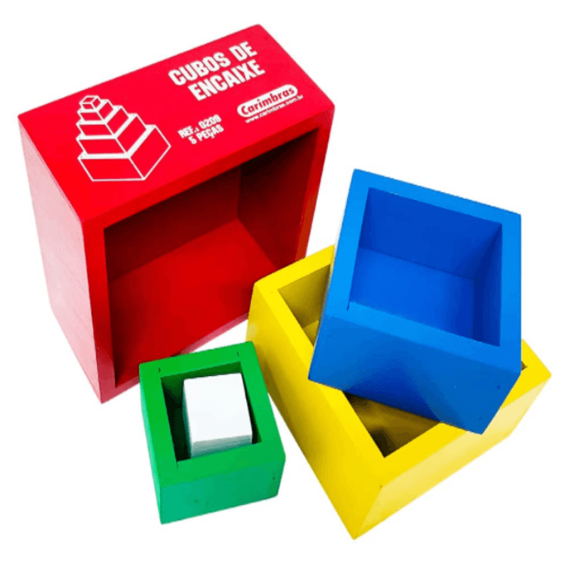O brinquedo educativo Cubos de Encaixe modelo 0209 da Carimbras, acompanha 5 cubos nas cores amarelo, vermelho, azul, verde e branca. Cada peça se encaixa uma dentro da outra na sequência correta conforme as imagens. Feito todo em madeira, o brinquedo tem como objetivo trabalhar junto com os pequenos, os tamanhos, formas, encaixe, espaço e a coordenação motora, e é indicado para crianças a partir de 18 meses. Os brinquedos de montar são muito comuns na vida das crianças, sobretudo na educação infantil. Trata-se de blocos de encaixar que podem aparecer em versões diversas, como em cubos onde as pecinhas de montar precisam ser corretamente colocadas para entrarem na caixa ou hastes onde as peças devem ser corretamente empilhadas. Seja como for, bloquinhos de montar são ótimos brinquedos didáticos, pois ensinam aos pequenos muito mais do que os adultos imaginam. Além das cores, as crianças aprendem a distinguir por exemplo com os blocos de madeira por tamanho e posição, sendo despertadas para o conceito de compor e decompor, aprendendo, para isso, a reconhecer as partes de um todo. É preciso, para lidar com este tipo de brinquedo educativo infantil, desenvolver ou aprimorar certos músculos específicos da mão e do braço com o objetivo de realizar certos tipos de movimento. Por esta razão, os especialistas afirmam que os blocos de montar são muito úteis para a aperfeiçoar a coordenação motora fina. Este brinquedo educativo não emite som nem luz, razão pela qual dispensa o uso de pilhas e baterias, e as imagens são meramente ilustrativas. Conteúdo da Embalagem: 1 Brinquedo Educativo Cubos de Encaixe com 05 peças. Certificado de Segurança: INMETRO CE-BRI/OCP-N 0041-19 Todos os nossos produtos são originais, com garantia e acompanham nota fiscal.
