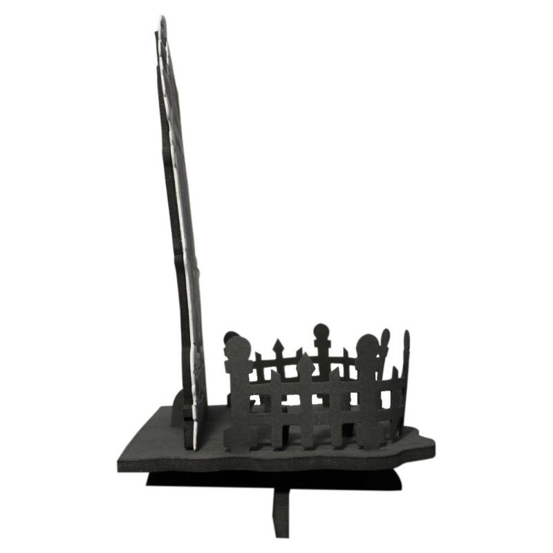 Transforme sua festa de Halloween em um verdadeiro cemitério aterrorizante com esta incrível decoração de mesa em formato de lápide. Fabricada em E.V.A. com pigmentação atóxica, esta peça é ideal para decorar sua mesa de doces ou enfeitar o ambiente com muito estilo e diversão. A lápide tem um design 3D detalhado, com uma mão de zumbi saindo da terra, além de caveiras assustadoras e uma cerca que adiciona ainda mais realismo ao cenário. É perfeita para festas temáticas de Halloween, jantares macabros ou para criar um clima de terror na sua decoração. Garanta um toque aterrorizante e divertido para o seu Halloween com esta decoração de lápide de mesa! Perfeita para surpreender seus convidados e deixar sua festa inesquecível!