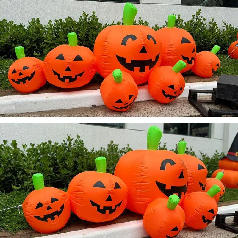 Produto original! Surpreenda todos neste Halloween com a nossa incrível Abóbora Inflável! Com impressionantes 2,55 metros de comprimento e 89 cm de altura, esta decoração ganha vida ao balançar com o vento, criando uma atmosfera mágica e divertida. Feita com material durável (90% poliéster e 10% circuito eletrônico), ela infla em segundos e inclui soprador, estacas, cordas e bolsa para fácil montagem. As abóboras possuem lanternas internas, iluminando-se à noite, tornando o cenário ainda mais especial e destacando-se no escuro.