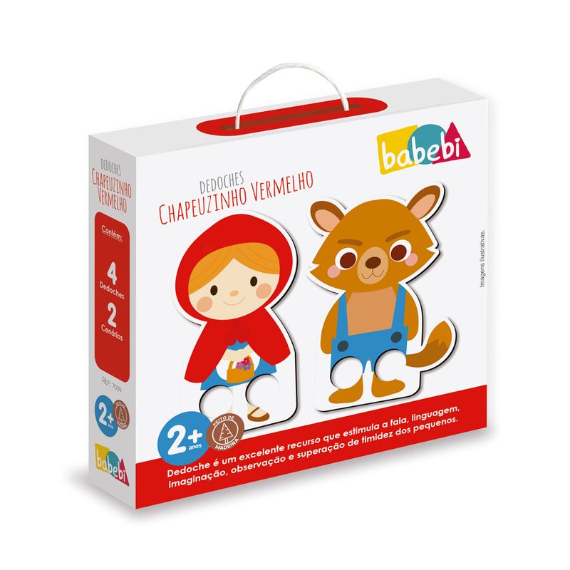 Dedoche é um excelente recurso que estimula a fala, linguagem, imaginação, observação e superação de timidez dos pequenos. Contém: 4 dedoches e 2 cenários..Material: madeira MDF reflorestadaComposição: MadeiraFabricante: BABEBIEmbalagem: 3,5 cm x 15 cm x 15 cmPeso aprox.: 0,180 kg A partir de 2 anos Garantia: 3 (três) meses*Evite molhar o brinquedo, sua matéria prima é madeira e pode vir a danificar.**Pode ocorrer variação nas cores ou detalhes das imagens apresentadas para o produto. ***Pode conter partes pequenas que podem ser engolidas.