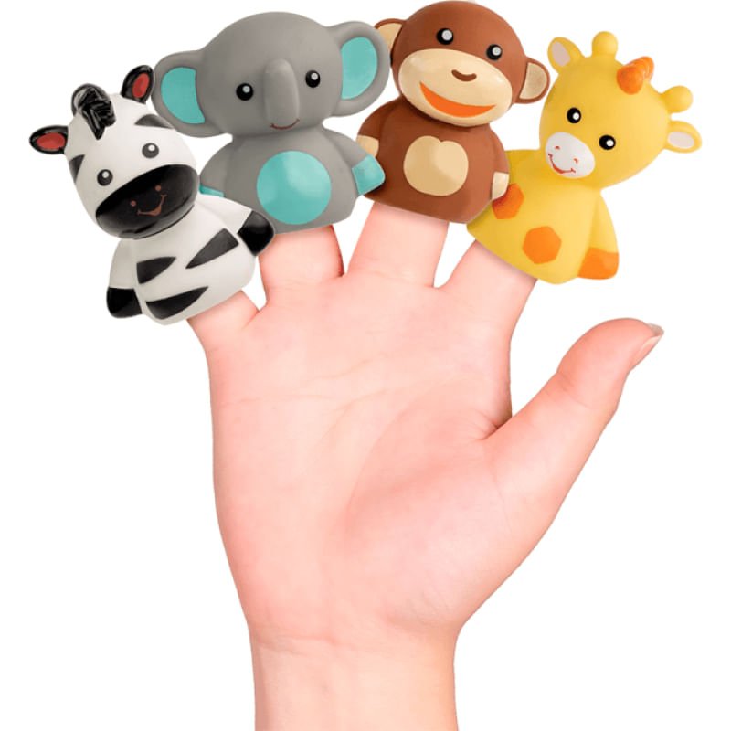 os Dedoches Amiguinhos da Selva Vão Estimular a Criatividade Dos Pequenos. com Quatro Personagens Diferentes, As Crianças Poderão Criar Historinhas e Soltar a Imaginação. Podem Ser Usados No Banho.