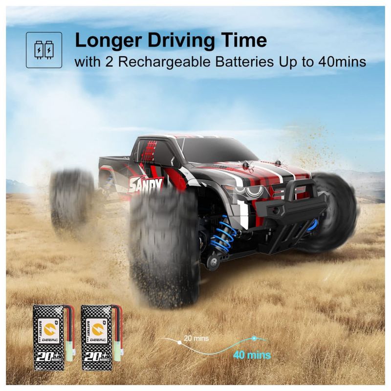 Corrida todo o terreno o design da suspensão independente é introduzido tanto na suspensão dianteira como na traseira neste carro RC de alta velocidade. Os amortecedores de metal facilitam se para aumentar ou diminuir a tensão da mola para as demandas de tração desejada e viagens de suspensão. As quatro rodas são todas embaladas com molas de metal que dão suporte a quedas inesperadas e à natureza ondulante do solo. O ambiente hostil não pode impedir sua jornada de corrida, dirija o DEERC para onde quiser