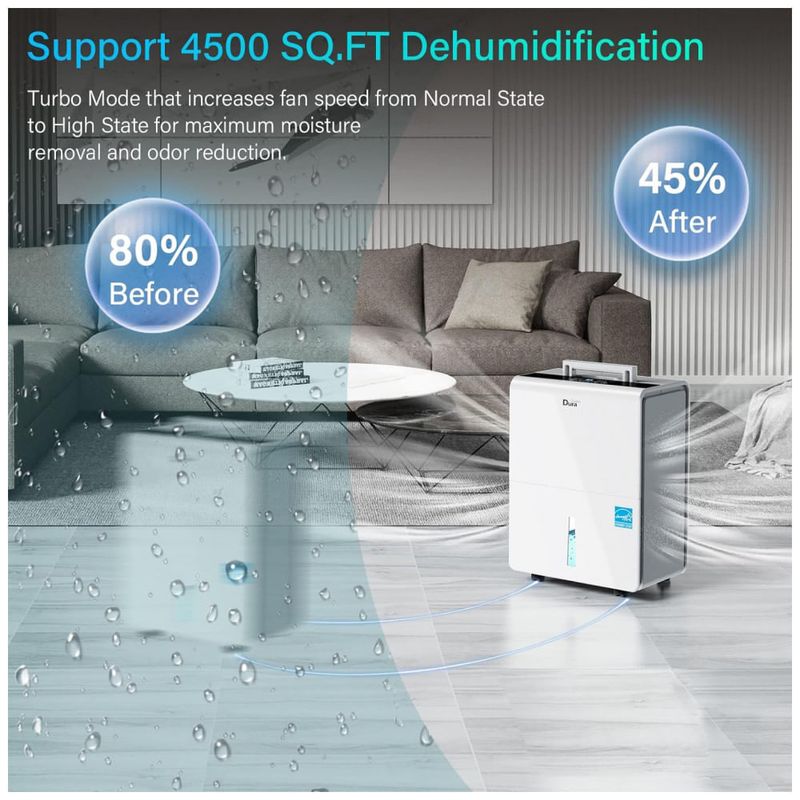 FUNÇÃO WIFI PARA ALCANÇAR O CONTROLE REMOTO INTELIGENTE Baixe o aplicativo DuraComfort em seu smartphone para controlar seu desumidificador doméstico no caminho do trabalho, ajuste as configurações de umidade, velocidade do vento e temporizador, para que você possa sentir imediatamente o ambiente de umidade confortável em casa .