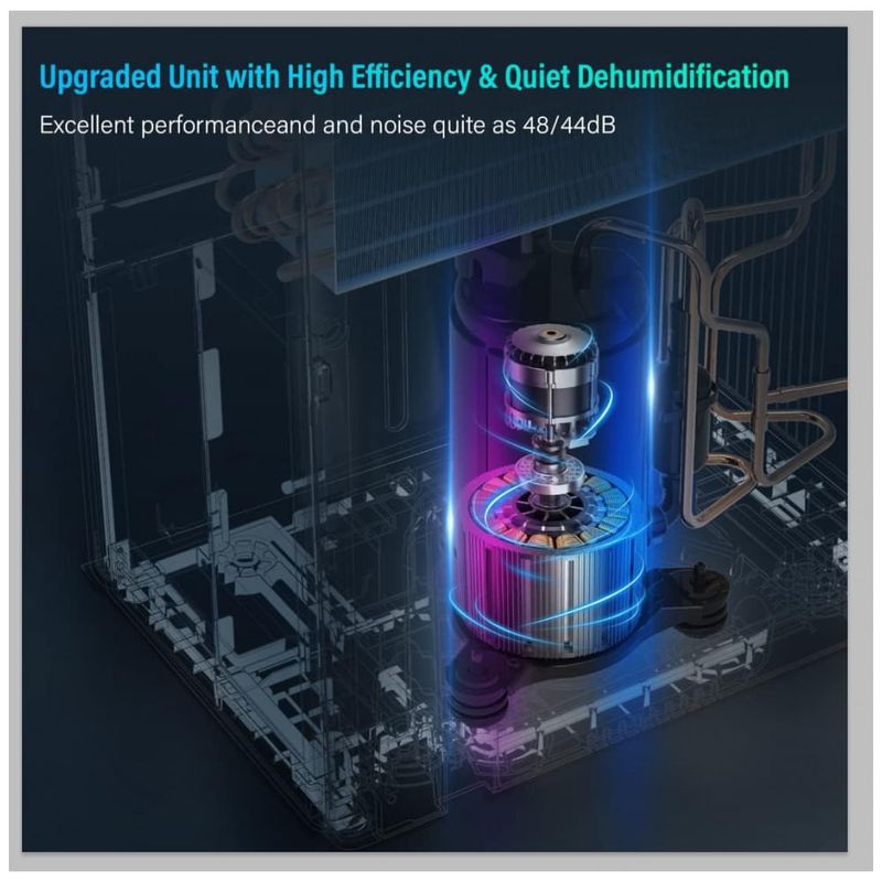 TANQUE DE ÁGUA PERSONALIZADO DE 6.5 LITROSO desumidificador eficiente vem com um tanque de água grande de 6.5 litros, torna muito fácil coletar o máximo de água possível uma vez. Quando o tanque de água está cheio, a água sensível flutua contra o interruptor e o desumidificador desliga se automaticamente sem que a água transborde. O indicador embutido TANK FULL acenderá para lembrar. Este design de flutuador de água evita que a unidade derrame, garantindo seu ótimo desempenho para um serviço mais longo