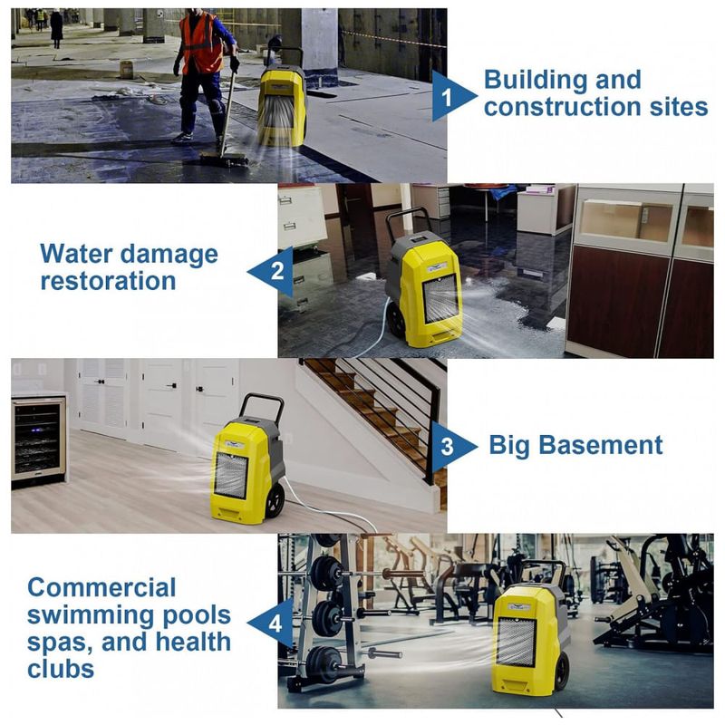 Os desumidificadores industriais de grande capacidade são ideais para projetos de restauração de danos causados pela água, seu compressor giratório de alta eficiência assegura a extração máxima da umidade. Nosso desumidificadorremove até 85 litros sob a condição de 35C, 90 UR de umidade por dia, cobrindo 213,68 metros quadrados. É um desumidificador perfeito para muitos locais com alta umidade, como pesquisa científica, armazenamento de commodities, engenharia subterrânea.